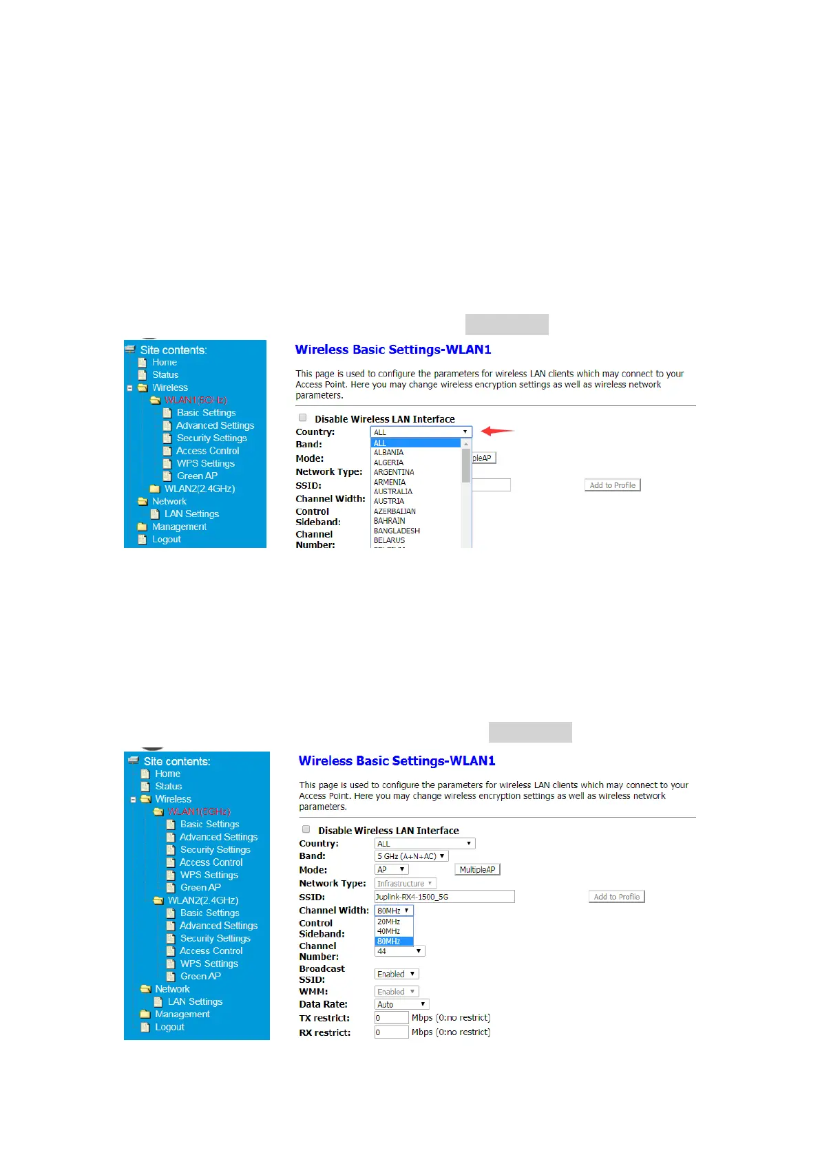② Click Wireless> WLAN1(5GHz)>Basic Settings or