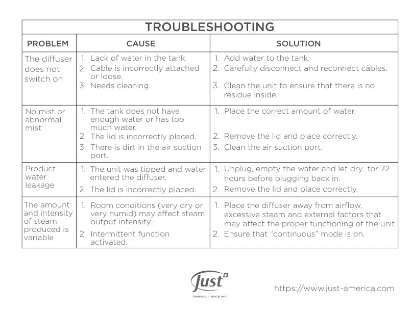 If the diffuser is accidentally overturned, unplug, empty the water and let dry for 72 hours.