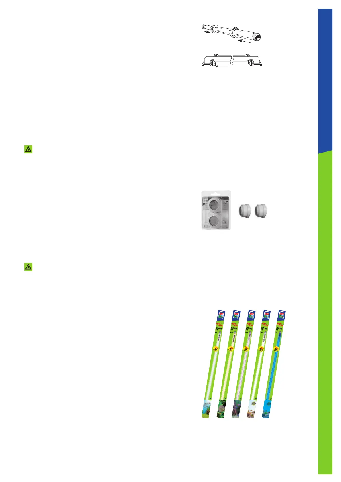 juwel Vision 180 - Care and Maintenance of the Multilux Lighting System; Changing the Multilux Light Tubes; JUWEL End Caps Recommendation; JUWEL High-Lite Fluorescent Tubes Information