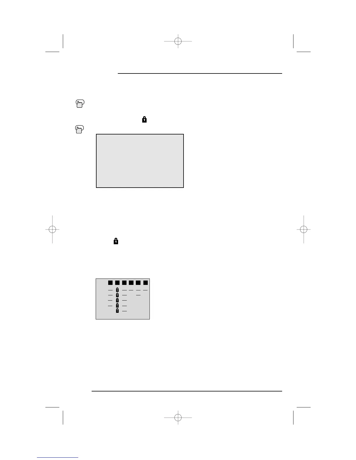 • If you want to change the setup, move the cursor to the top column and change the lock icon to