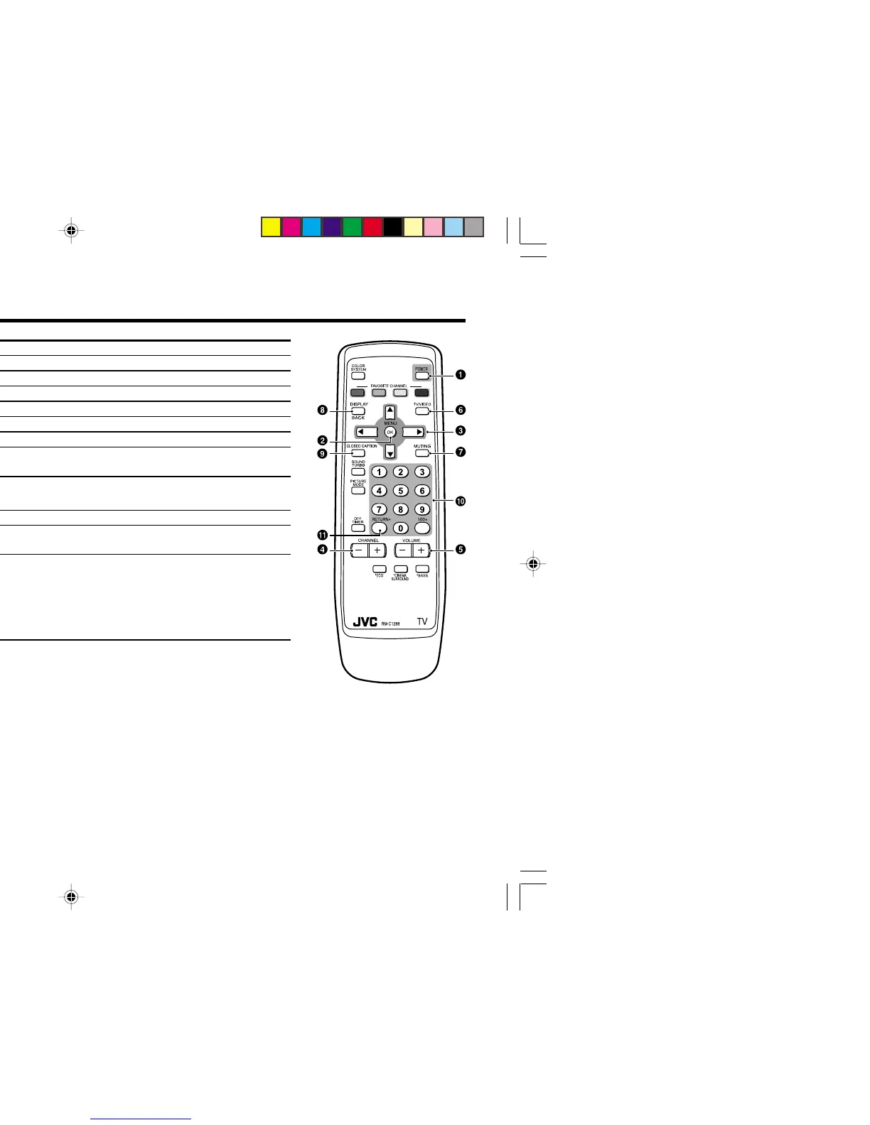 1 POWER Turn on or off the TV from standby mode.