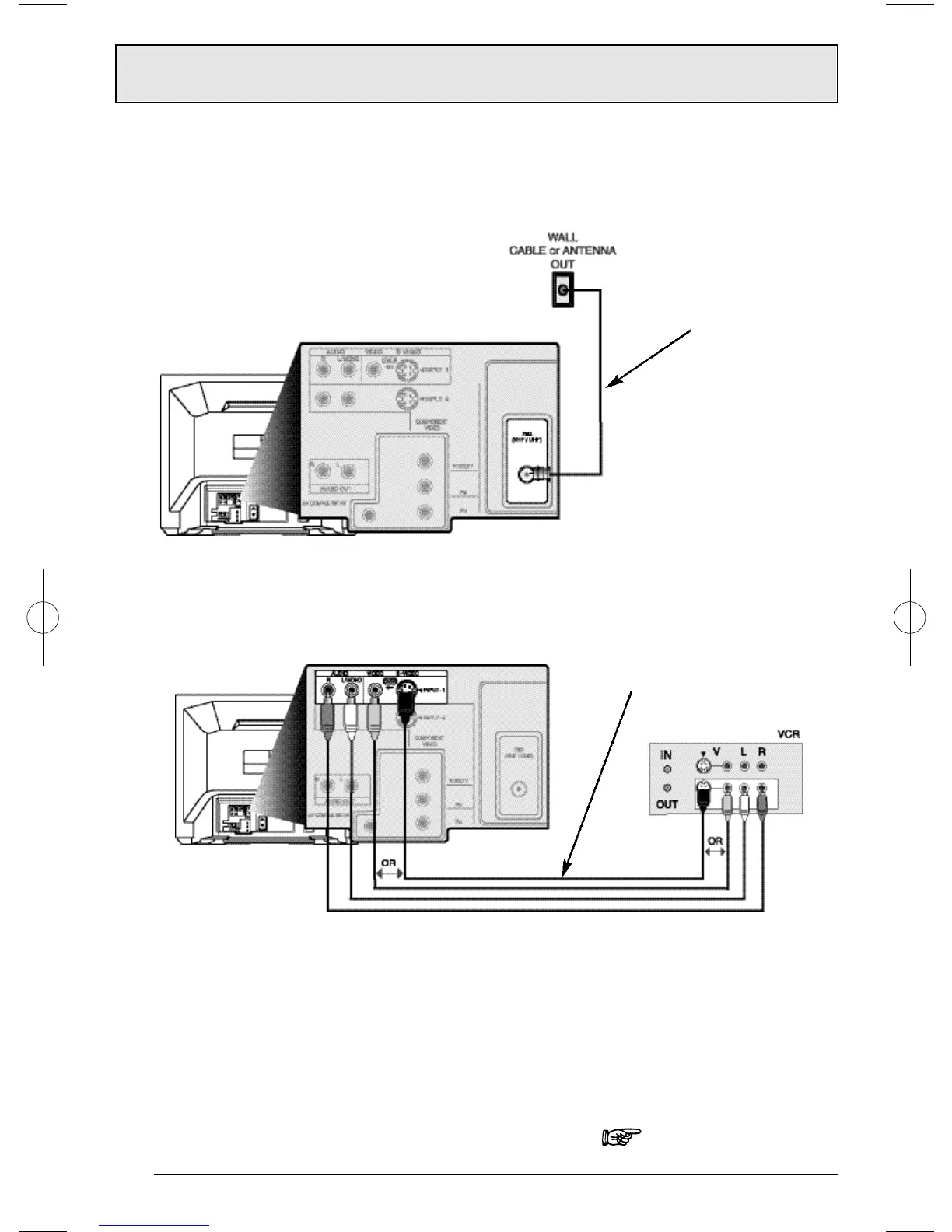 jack, OR connect an S-Video cable from the VCR’s S-Video output, to the TV’s S-Video input.