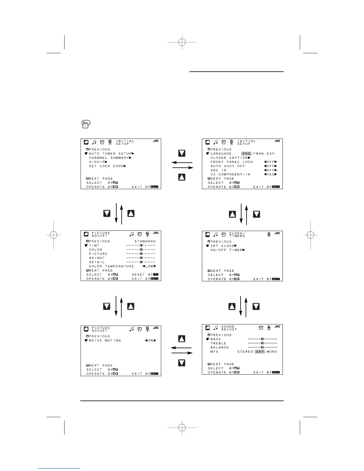Your television comes with JVC’s Onscreen Menu System. The Onscreen Menus let you make