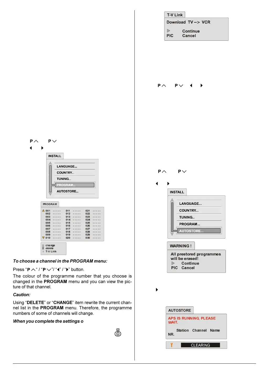 If you do not have a T-V LINK compatible VCR, press PIC-
