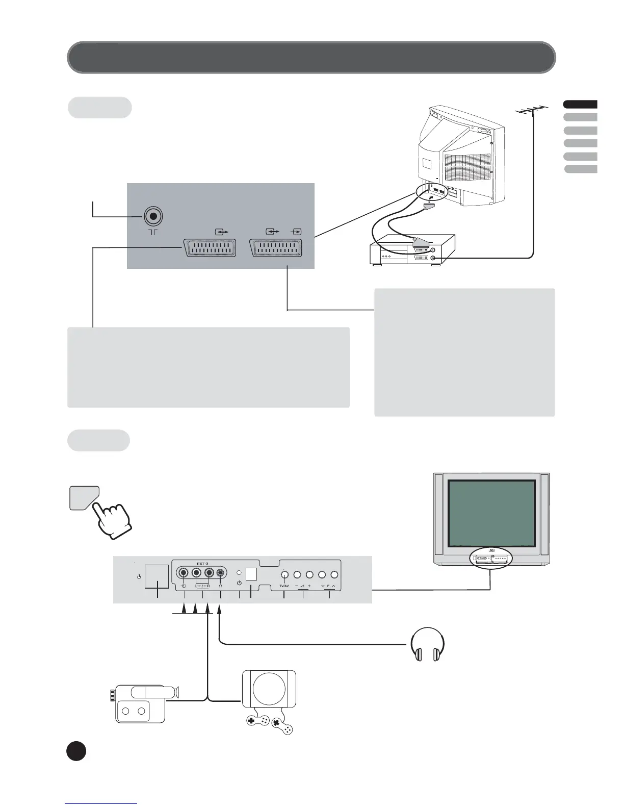 The rear Scart EXT-1, Scart EXT-2 sockets, the front EXT-3, are three dedicated sockets to connect audio-video equipment.