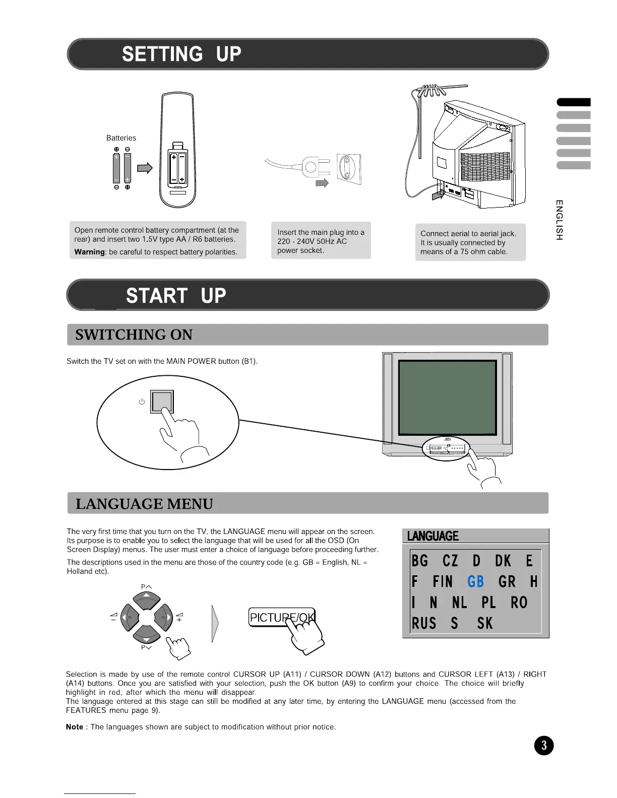 JVC AV-28NH4SU - Setting Up Your Television; Initial Power On; Language Menu Selection