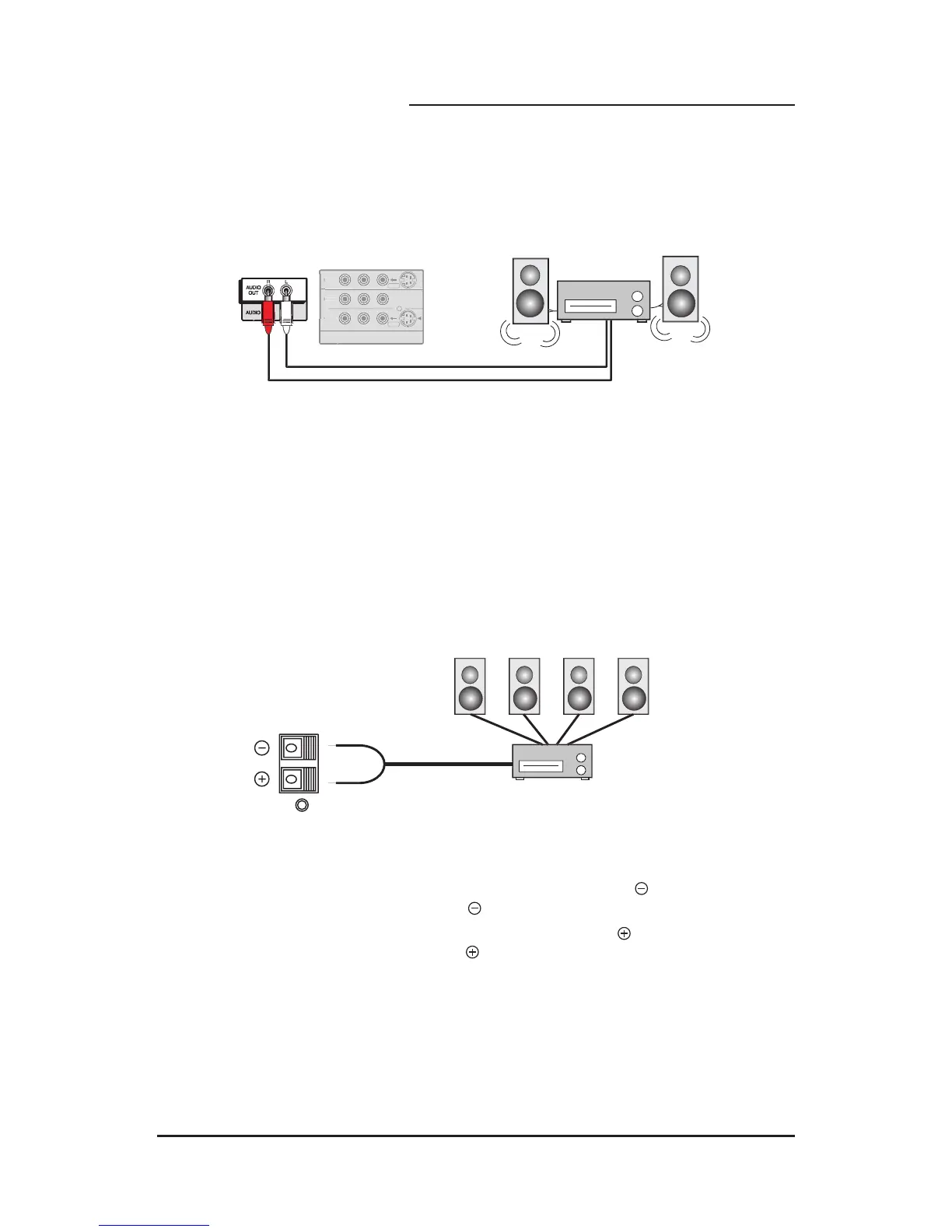1) Connect the BLACK speaker cable from the TV’s SPEAKER INPUT terminal to the