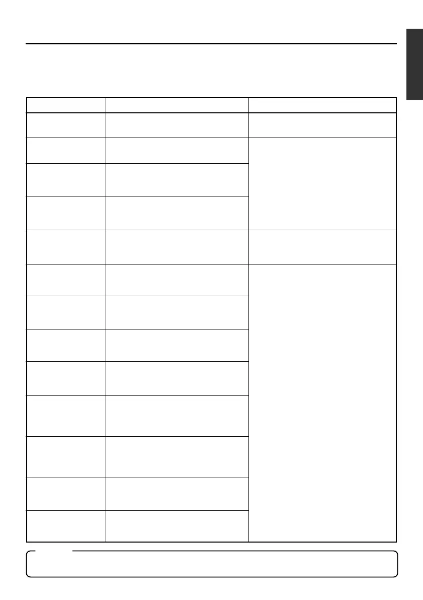 When a warning display appears, this unit stops operation and cease to accept any opera-