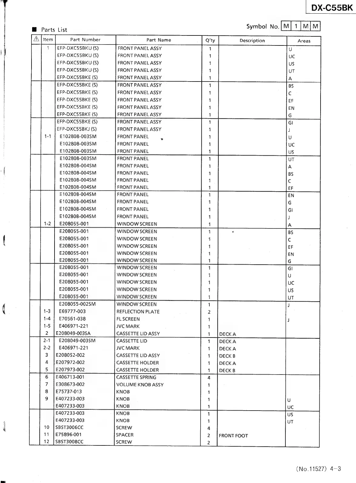 JVC CA-C55BK - Parts List - Front Panel Assy