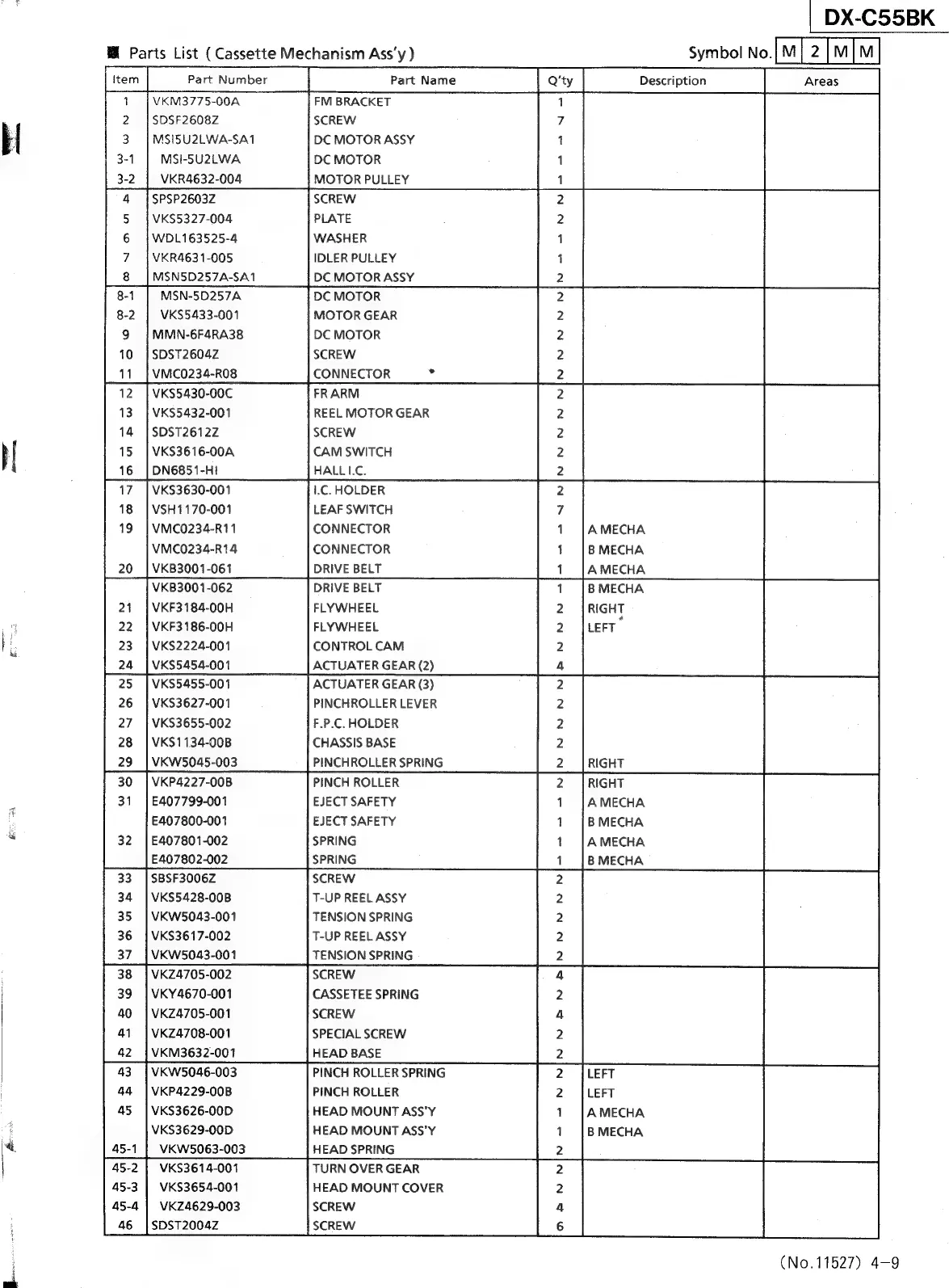 JVC CA-C55BK - Parts List - Cassette Mechanism Assy