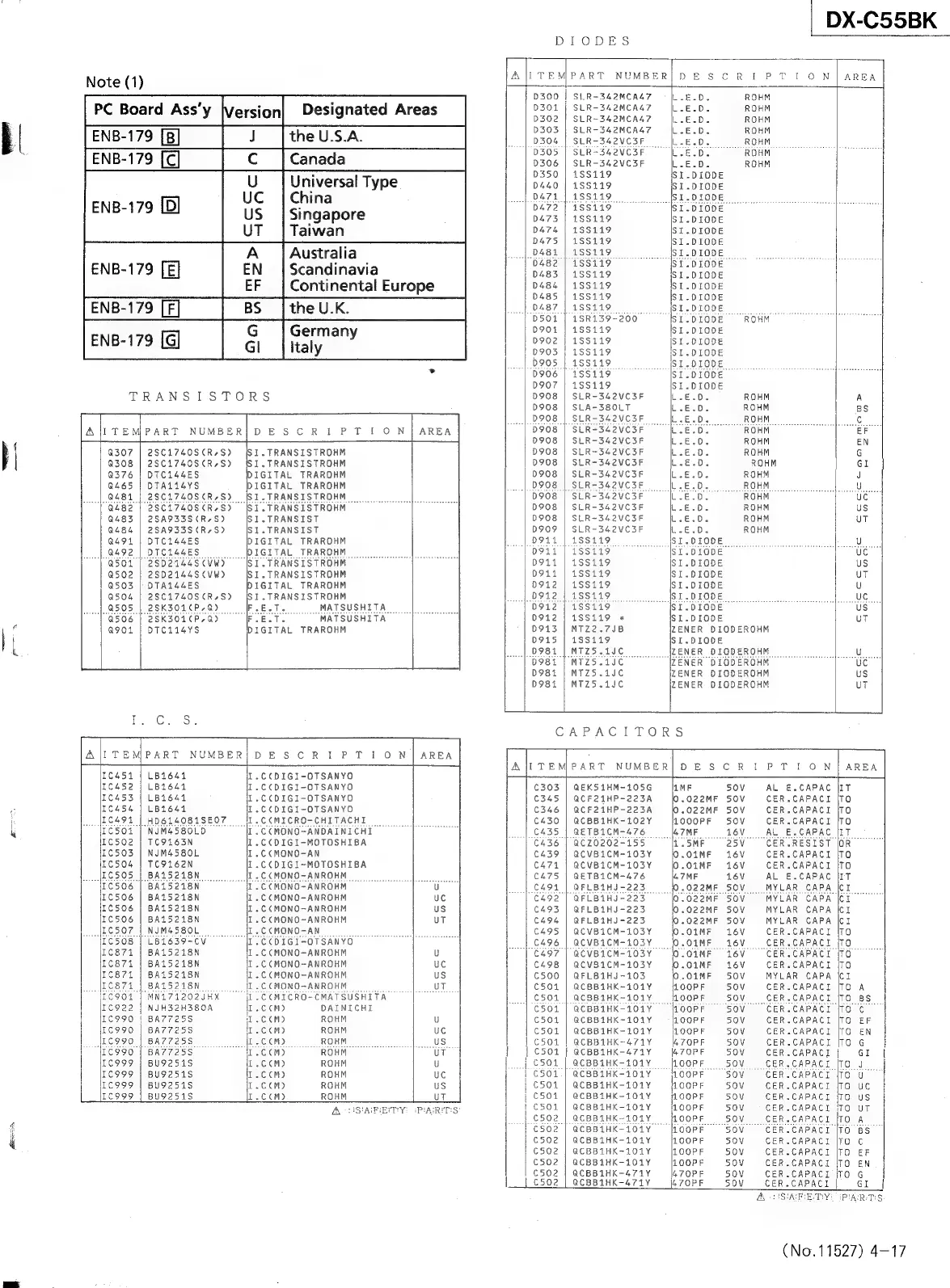 JVC CA-C55BK - Component Parts Lists; Transistors, Diodes, ICs, and Capacitors Lists