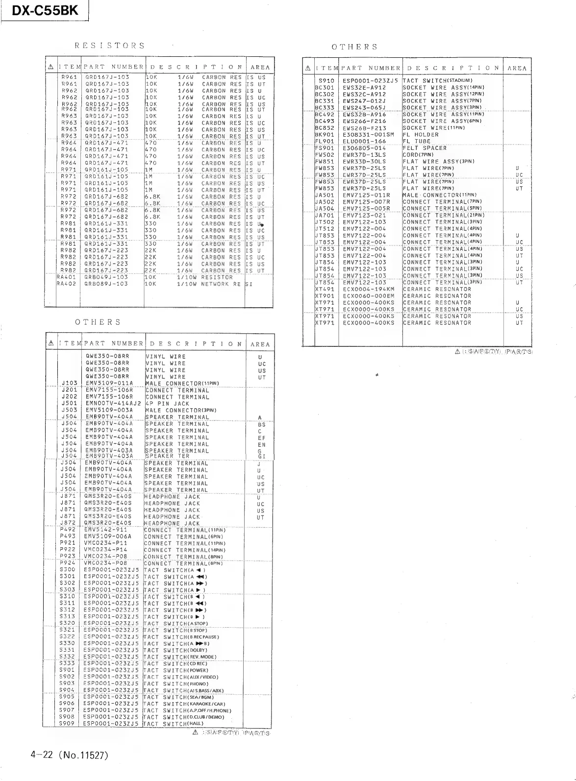 JVC CA-C55BK - Component Parts Lists; Transistors, Others, ICs, Diodes, Capacitors, Resistors Lists