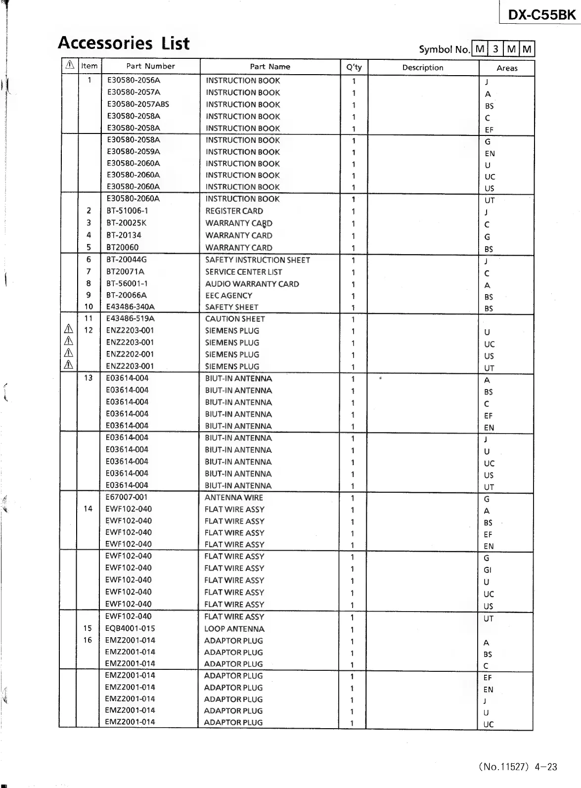 JVC CA-C55BK - Accessories List