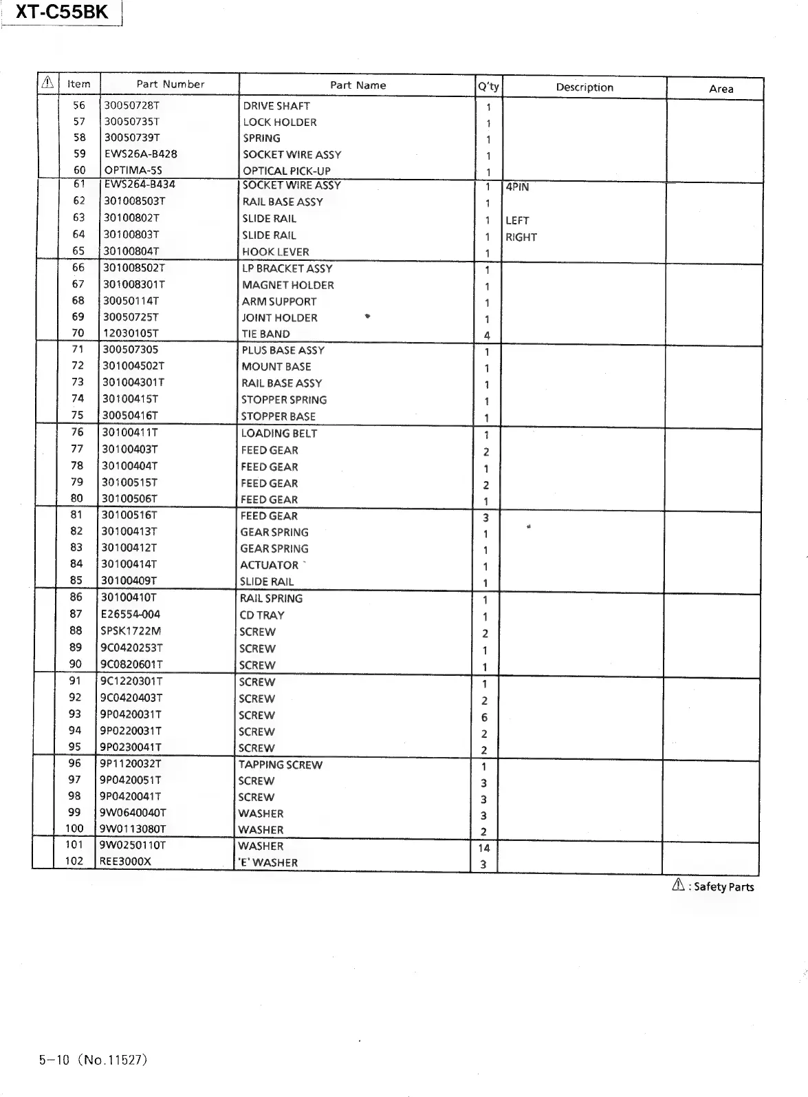 JVC CA-C55BK - Parts List (Changer Mechanism Assy)