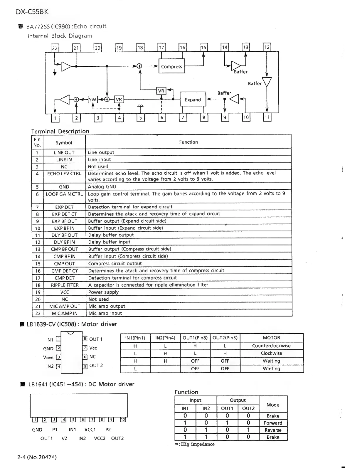 JVC CA-C55BK - IC Descriptions - Echo Circuit and Motor Driver; BA77258 (IC990) and LB1641 (IC451~454) Details