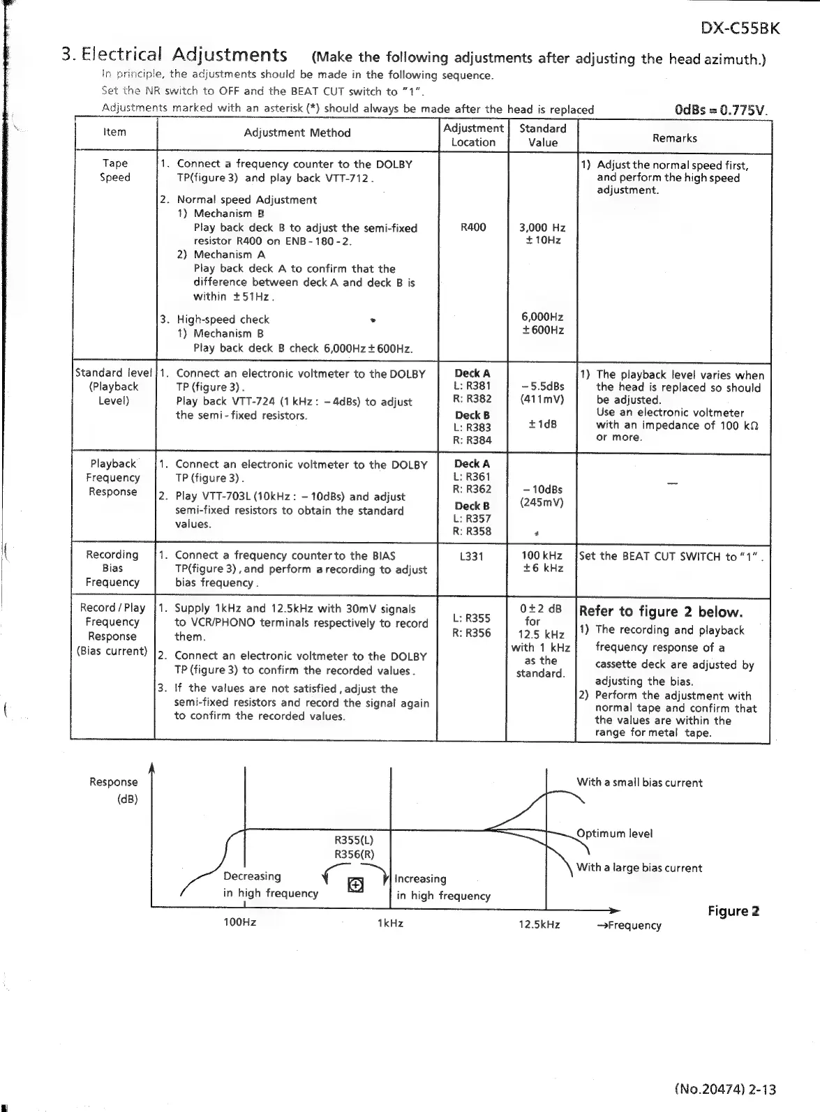 JVC CA-C55BK - Electrical Adjustments; Playback Level, Frequency Response, and Bias Adjustments