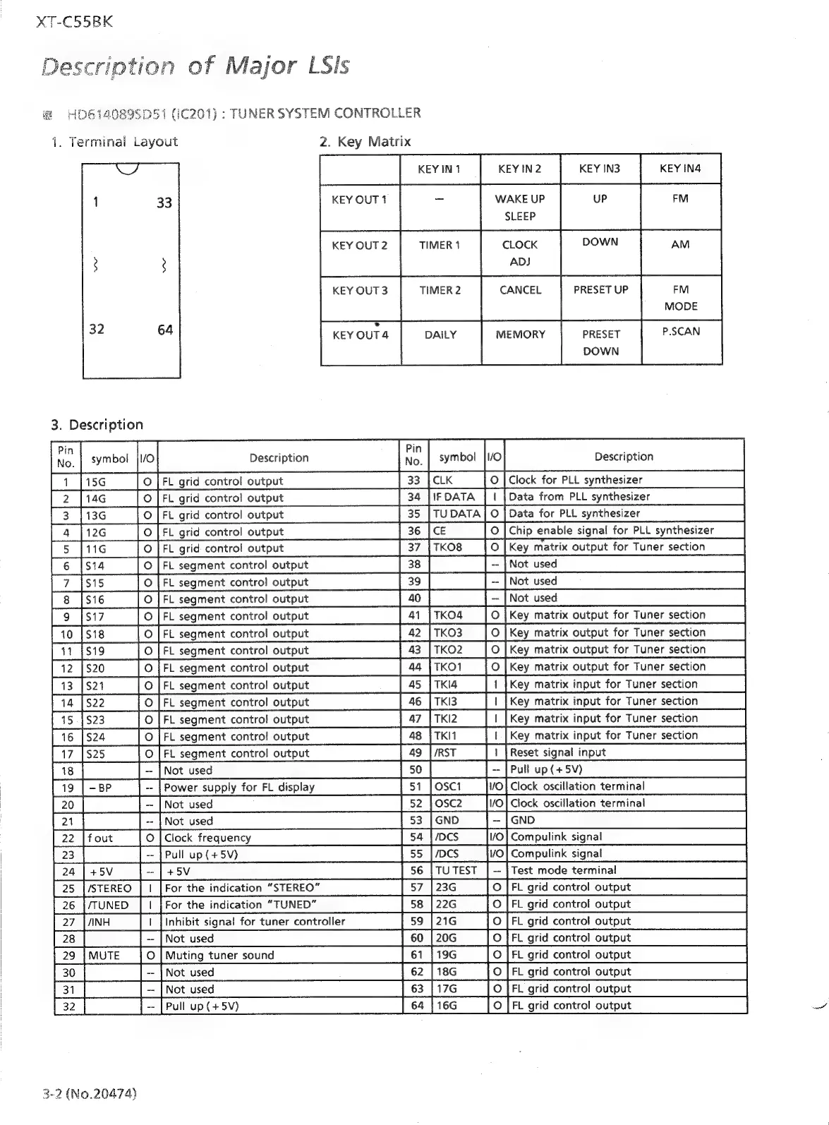 JVC CA-C55BK - IC Descriptions - Tuner System Controller; IC670 Terminal Layout, Key Matrix, and Description