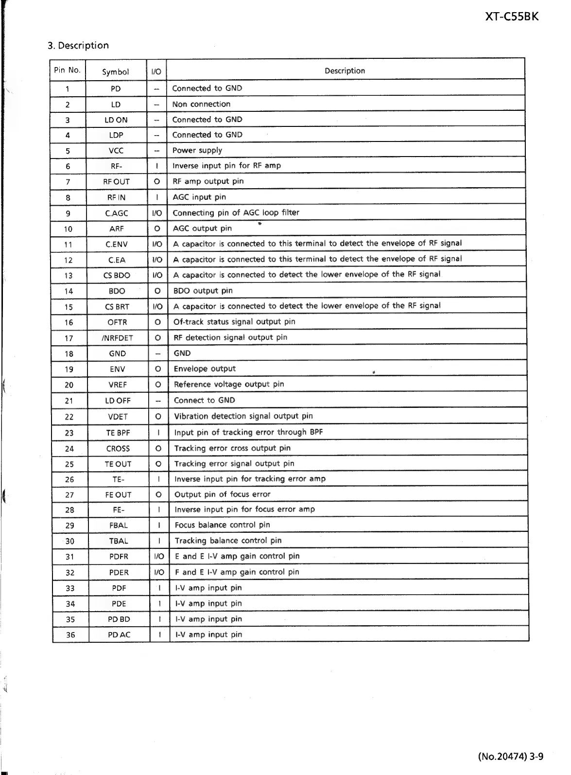 JVC CA-C55BK - IC Descriptions - AN8803 SB Pin Functions