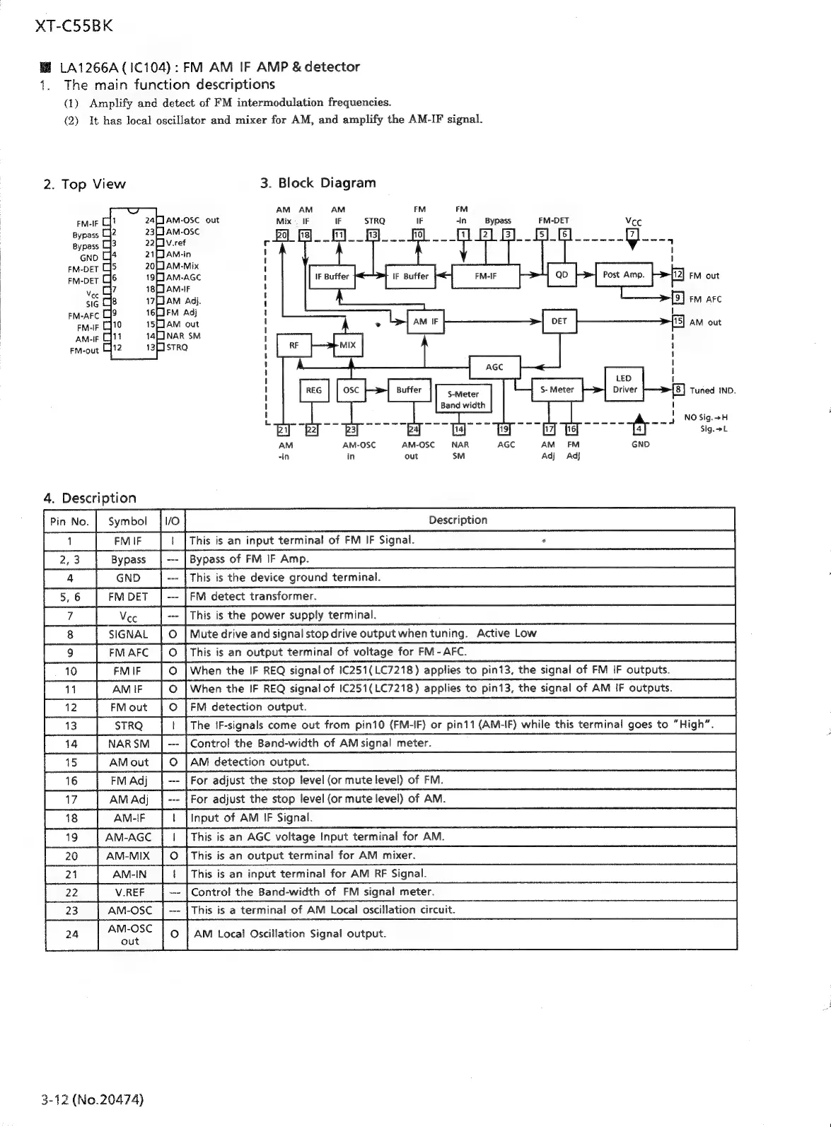JVC CA-C55BK - IC Descriptions - FM AM IF AMP & Detector; LA1266 A (IC104) Function, Layout, and Description