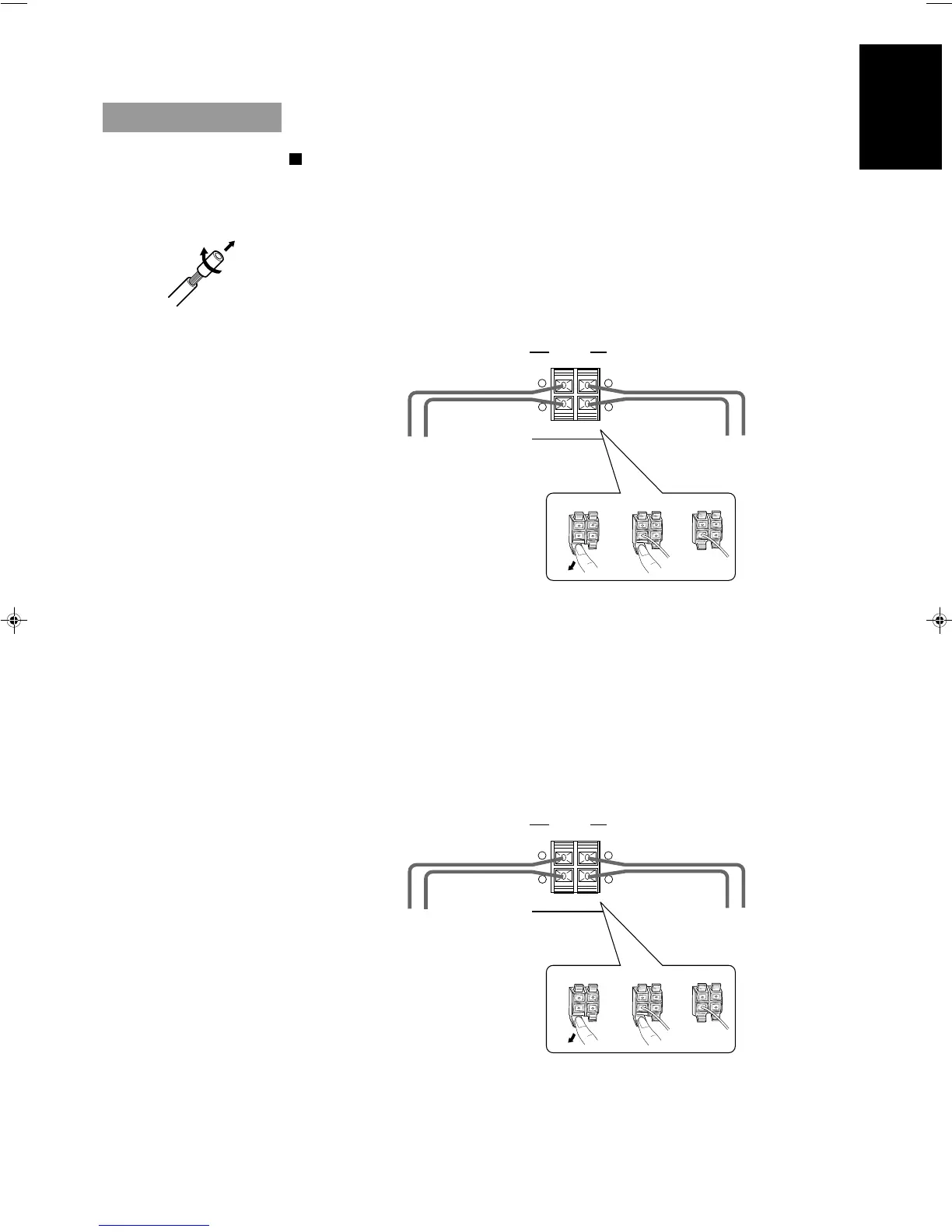 1. Open each of the terminals and insert the speaker wires firmly (be sure to remove the insulation at the