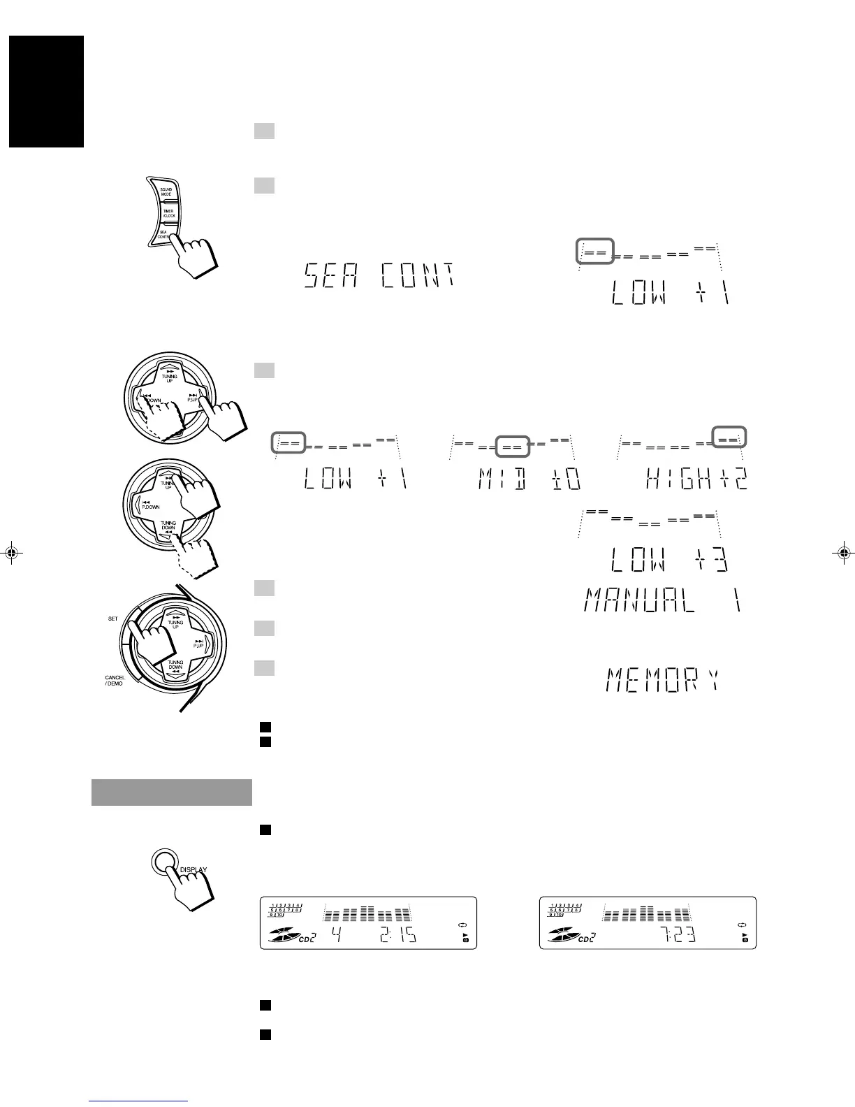 The low tone section of the tone equalizer flashes. Once “SEA CONT” appears, the low tone levels