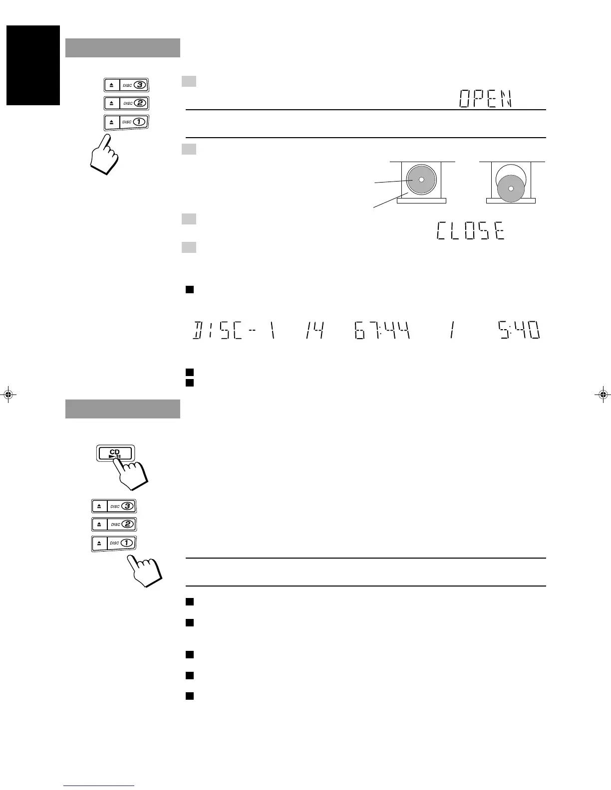 When you press CD £/8 or DISC (1 to 3) while the disc tray is open, the tray will automatically