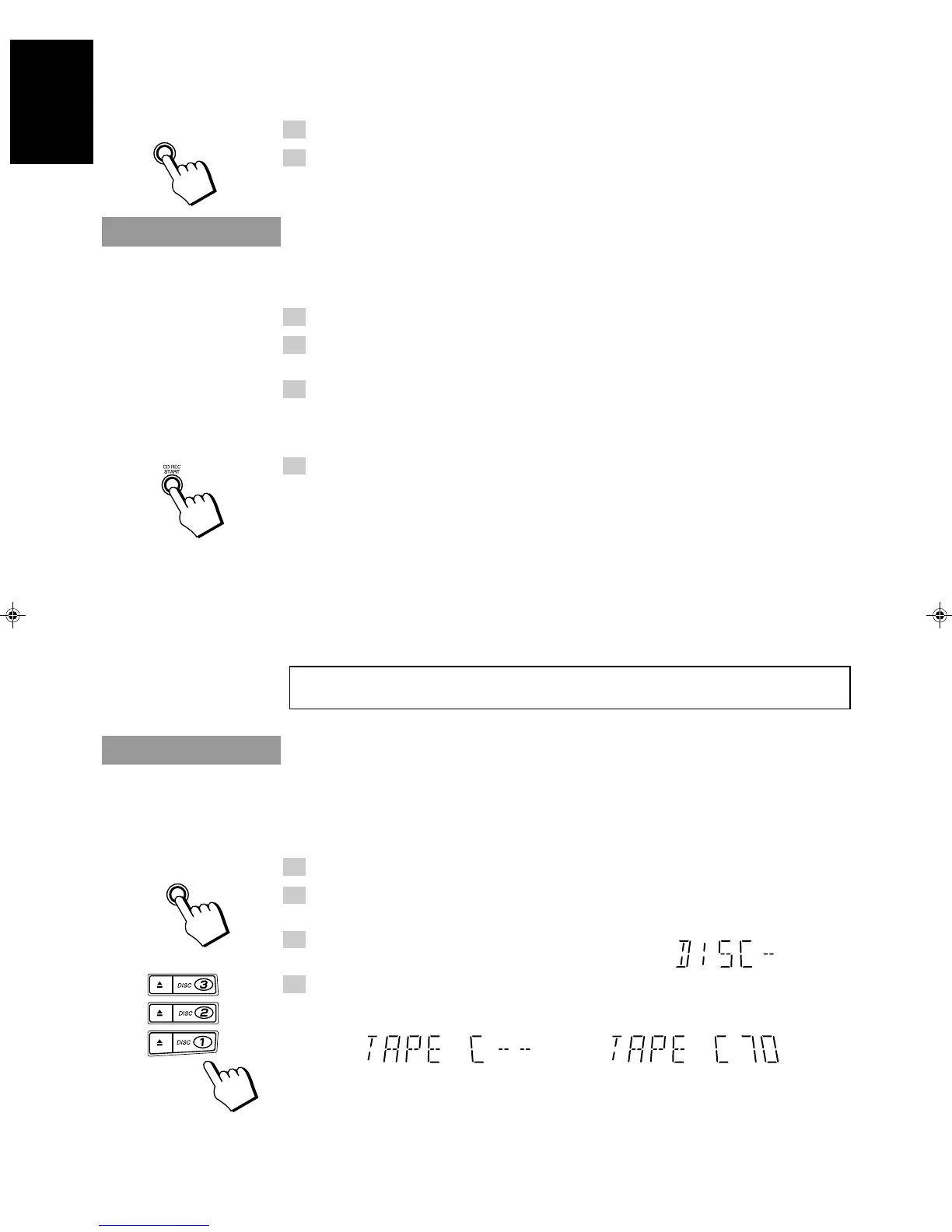 After “TAPE C - -”, the optimum tape length for the disc appears on the display.