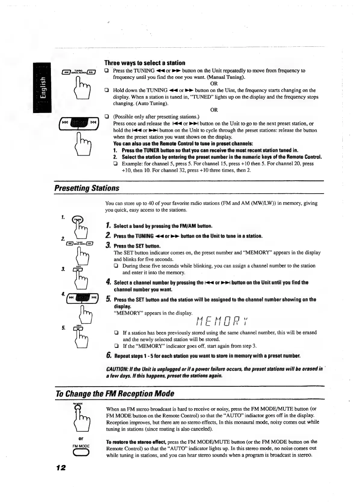 JVC CA-D5T - Three Ways to Select a Station; To Change the FM Reception Mode
