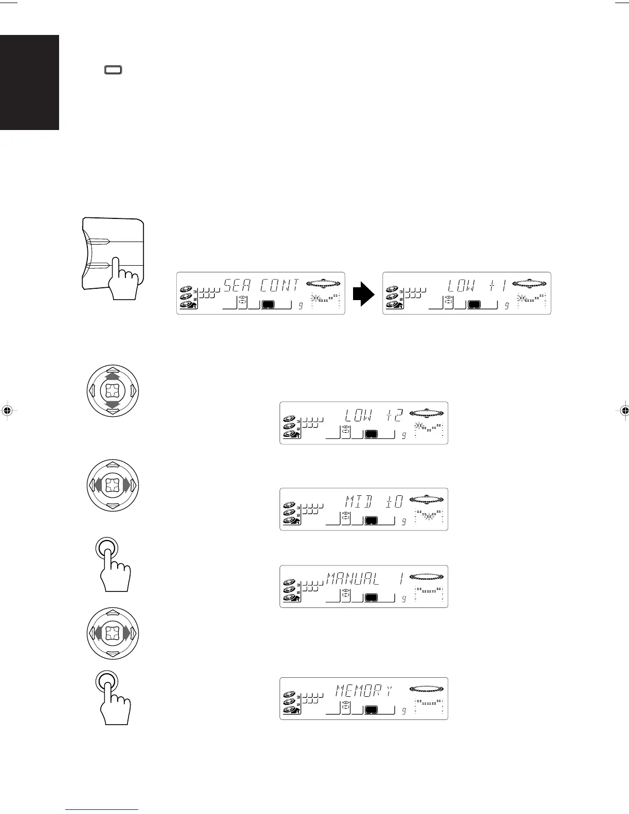 “SEA CONT” appears in the display, then the low tone section of the tone equalizer is displayed