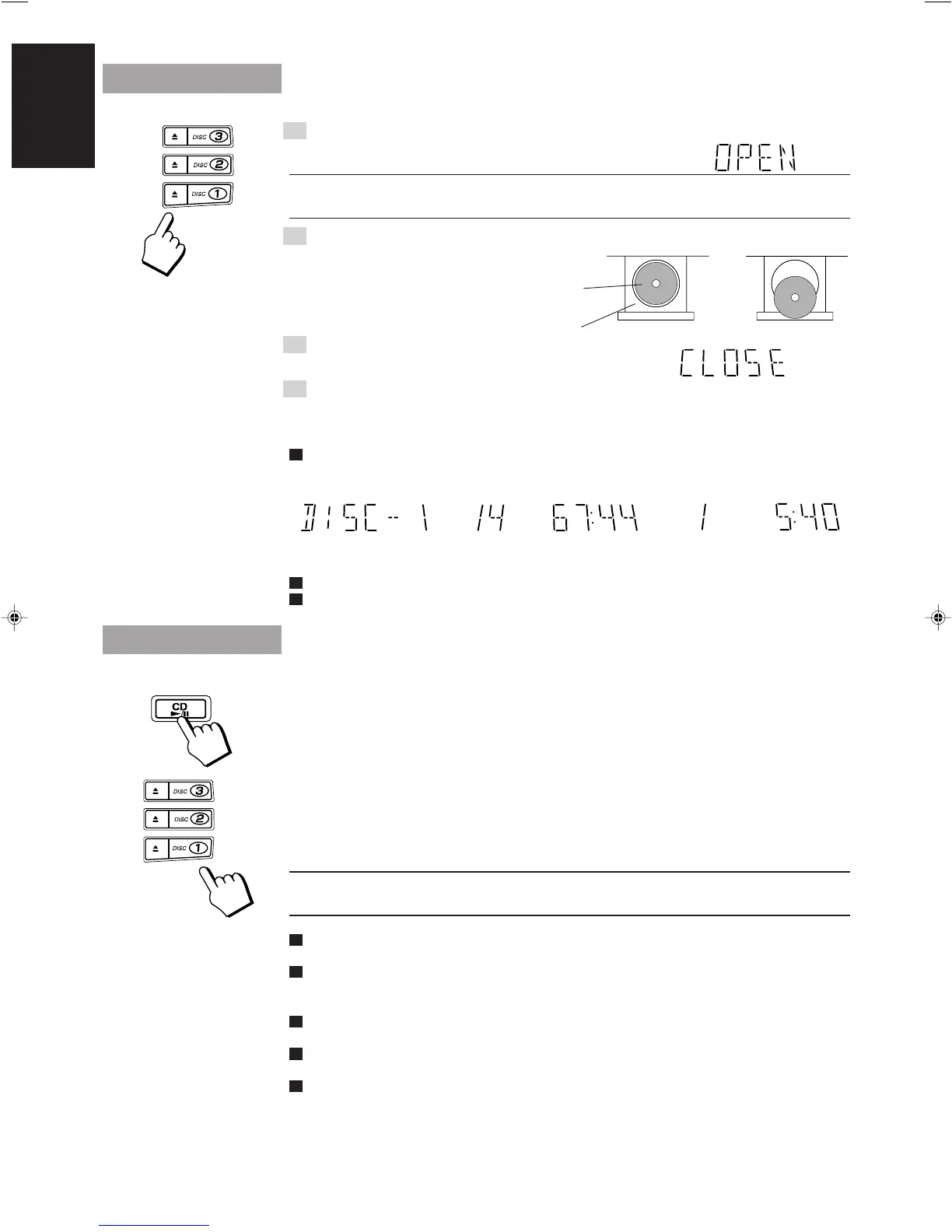 When you press CD £/8 or DISC (1 to 3) while the disc tray is open, the tray will automatically