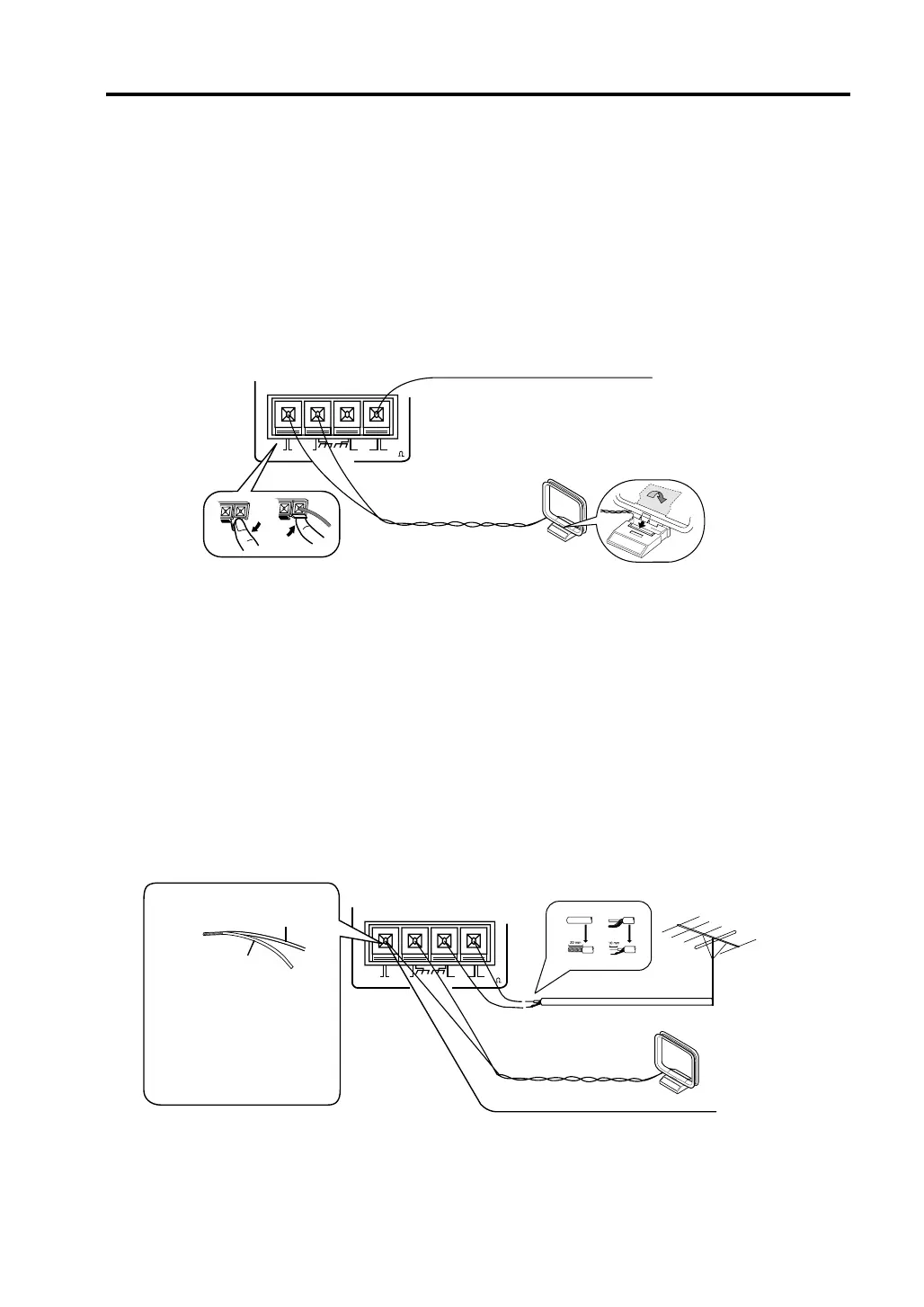 Connect the supplied FM (wire) antenna and AM loop antenna as shown below.