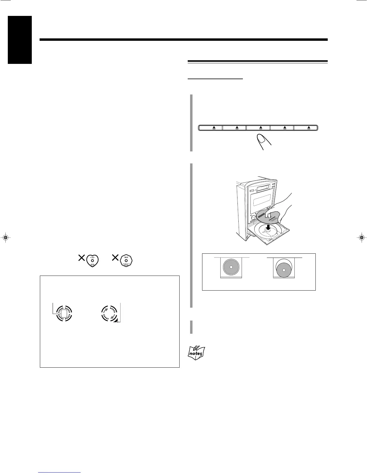 • When using a CD single (8 cm), place it on the inner