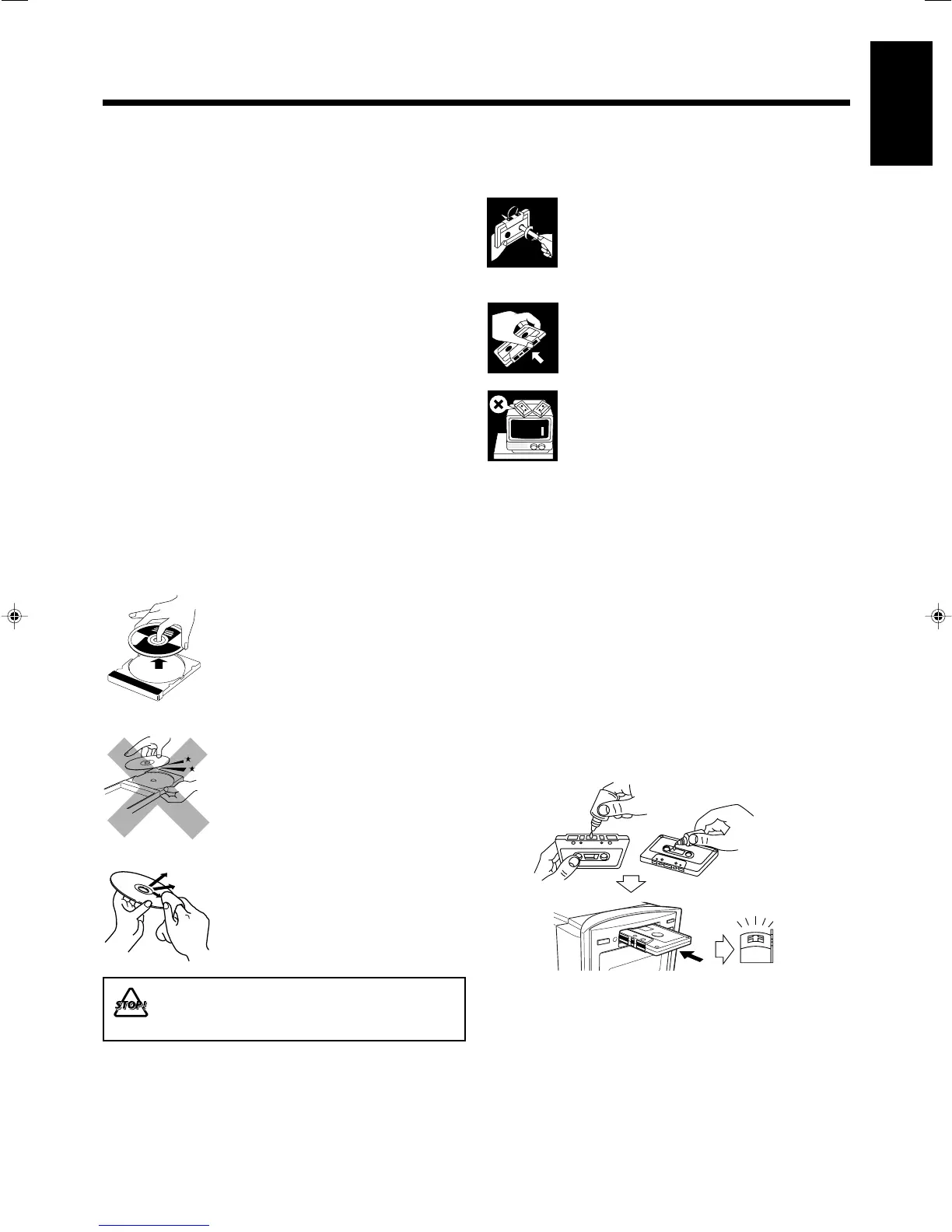 • Store discs and tapes in their cases, and keep them in