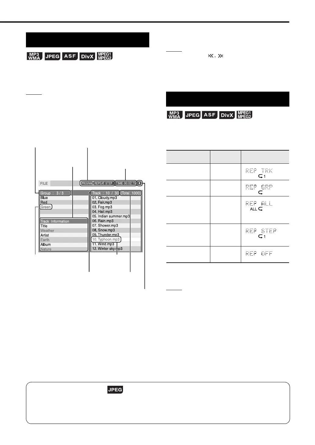 • In Step 5, for a JPEG disc, when DVD/CD 3 is pressed, files will be continuously played from the