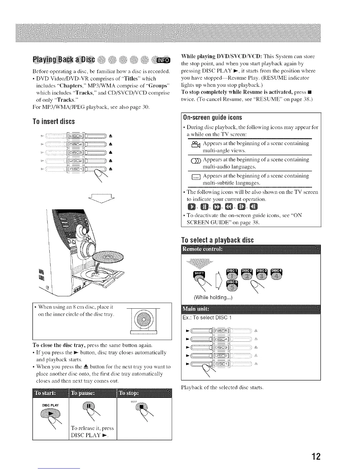 While playing DVD/SVCD/VCD: This System can store