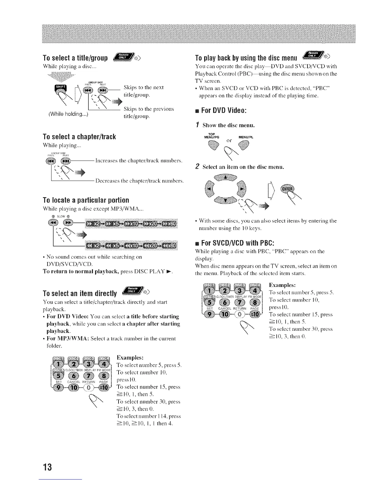 . With some discs, you can also select items by entering the