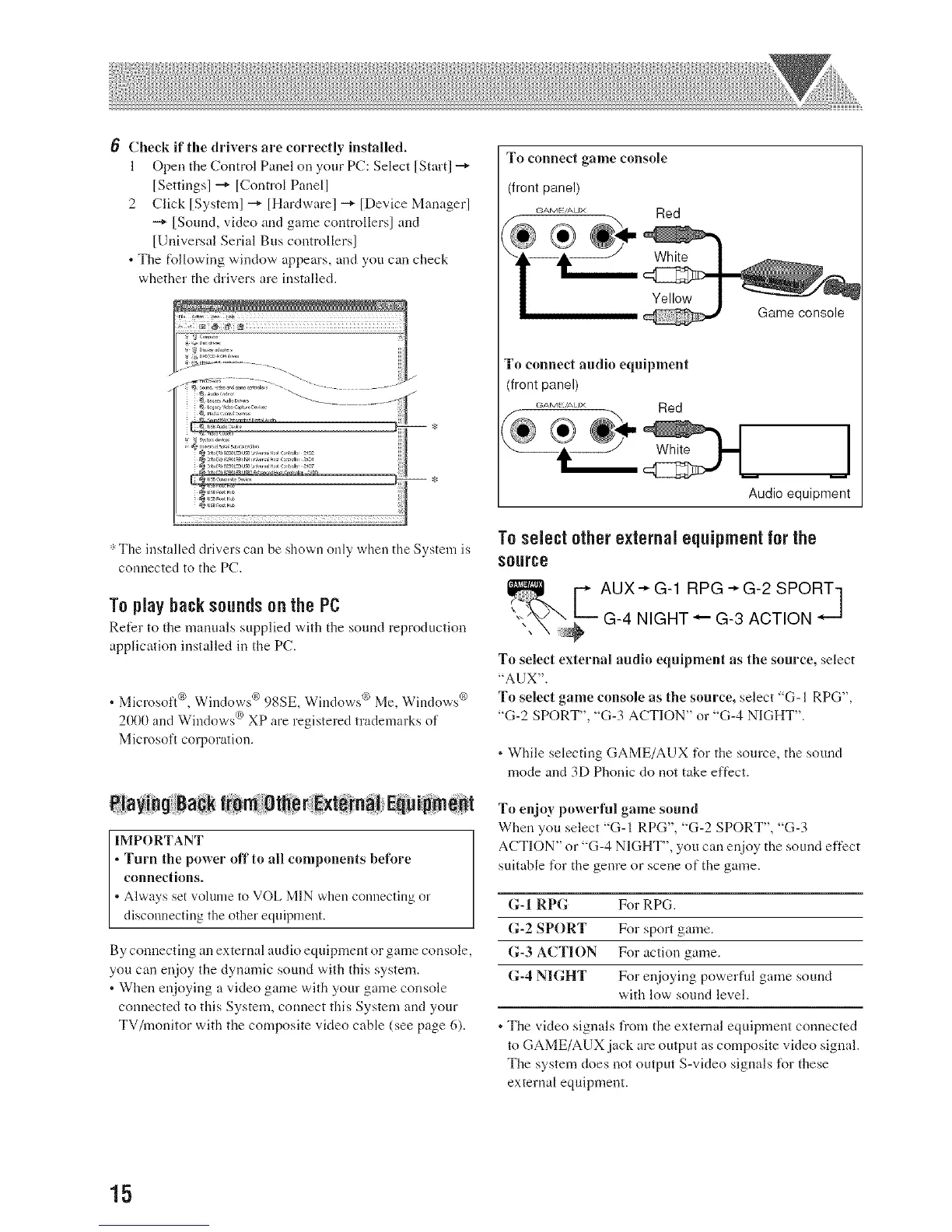 . While selecting GAME/AUX for the source, the sound