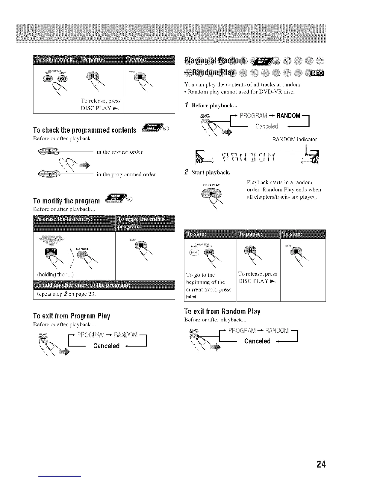 . Random play cannot used for DVD-VR disc.