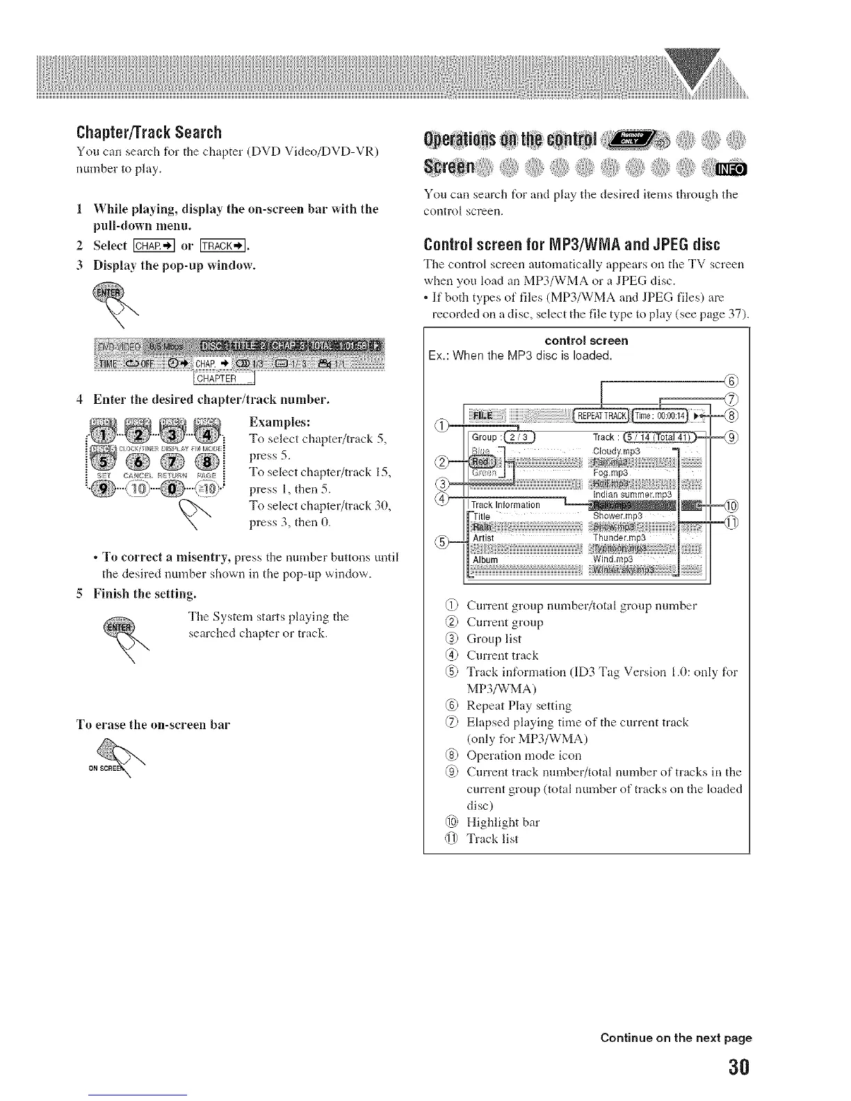 Conlrol screenfor MP3/WMAand JPEGdisc