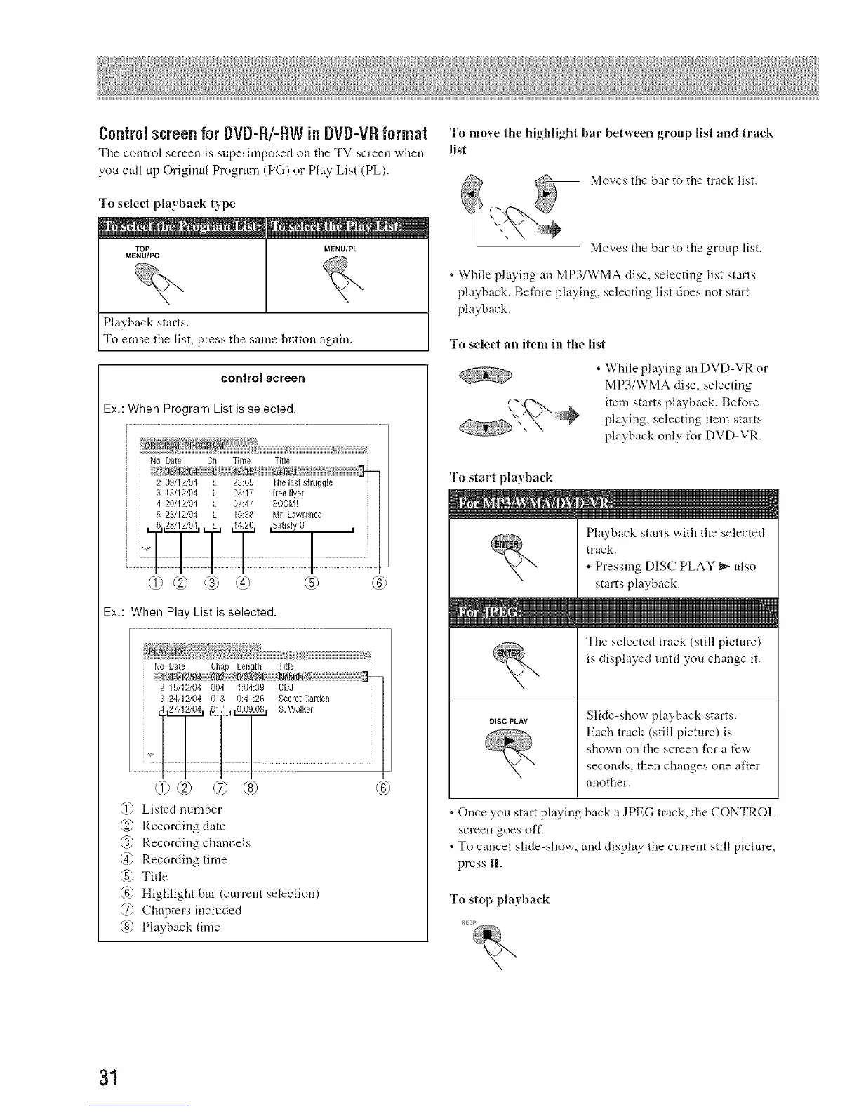 Control screen for DVD-R/-RW in DVD-VR forma|
