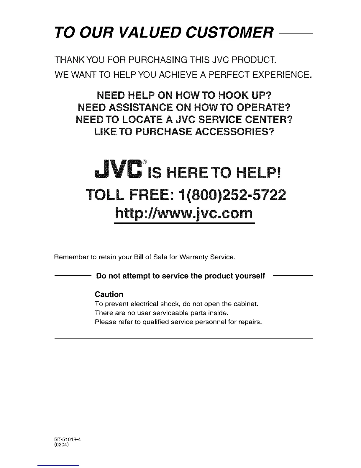 THANK YOU FOR PURCHASING THIS JVC PRODUCT.