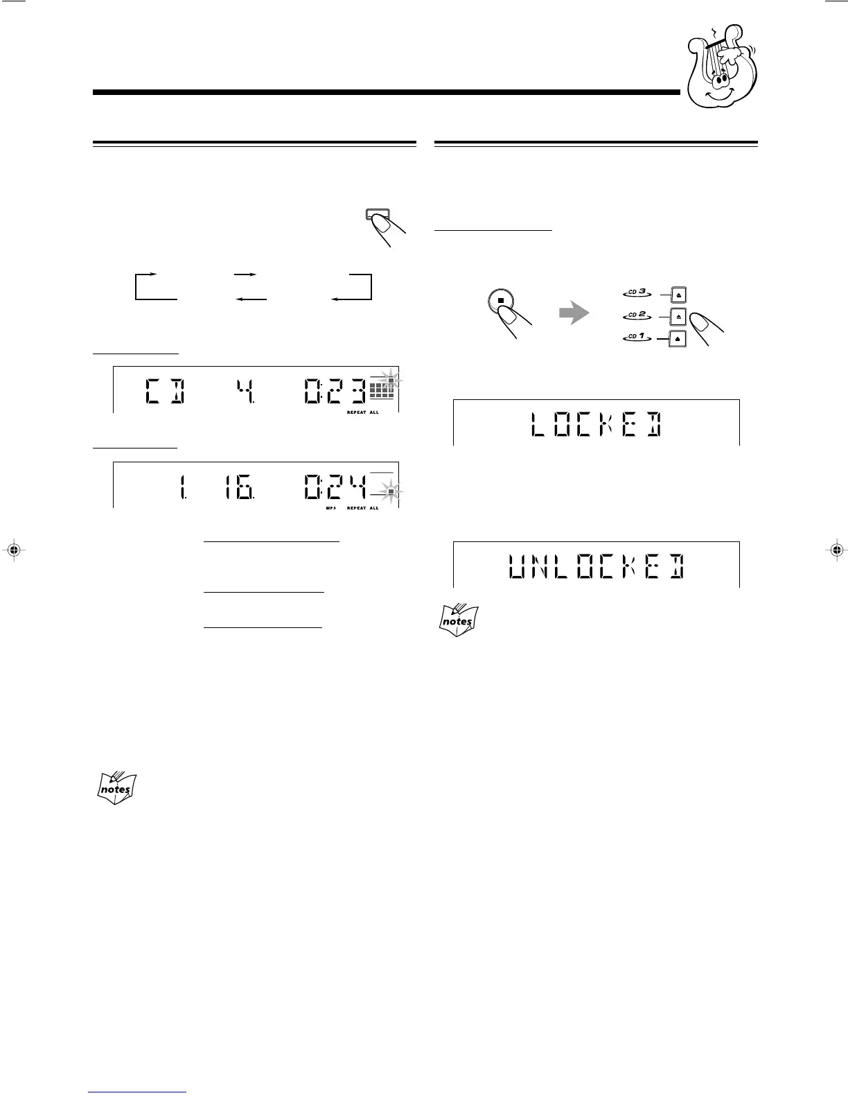 “LOCKED” appears to inform you that the disc trays are locked.