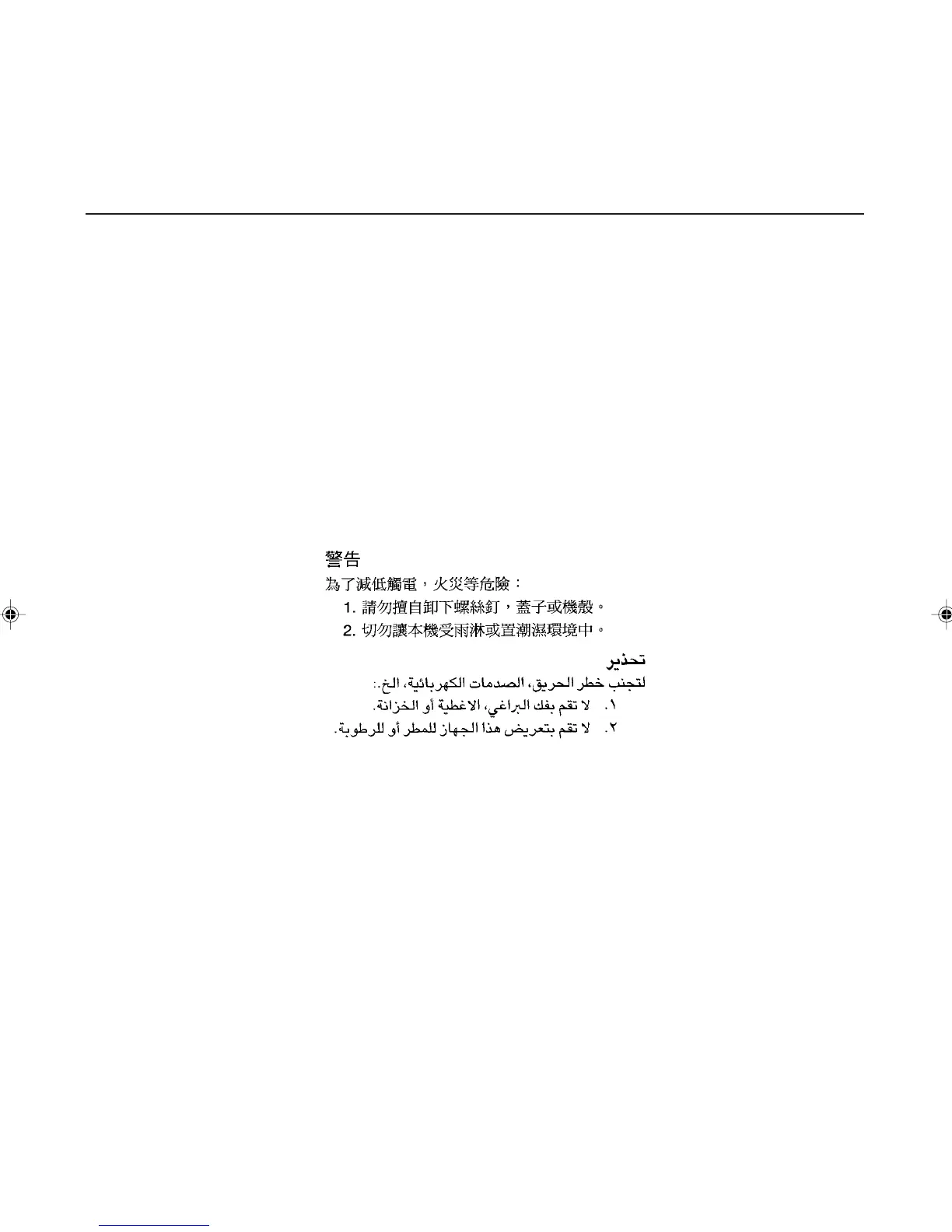 1. Do not remove screws, covers or cabinet.