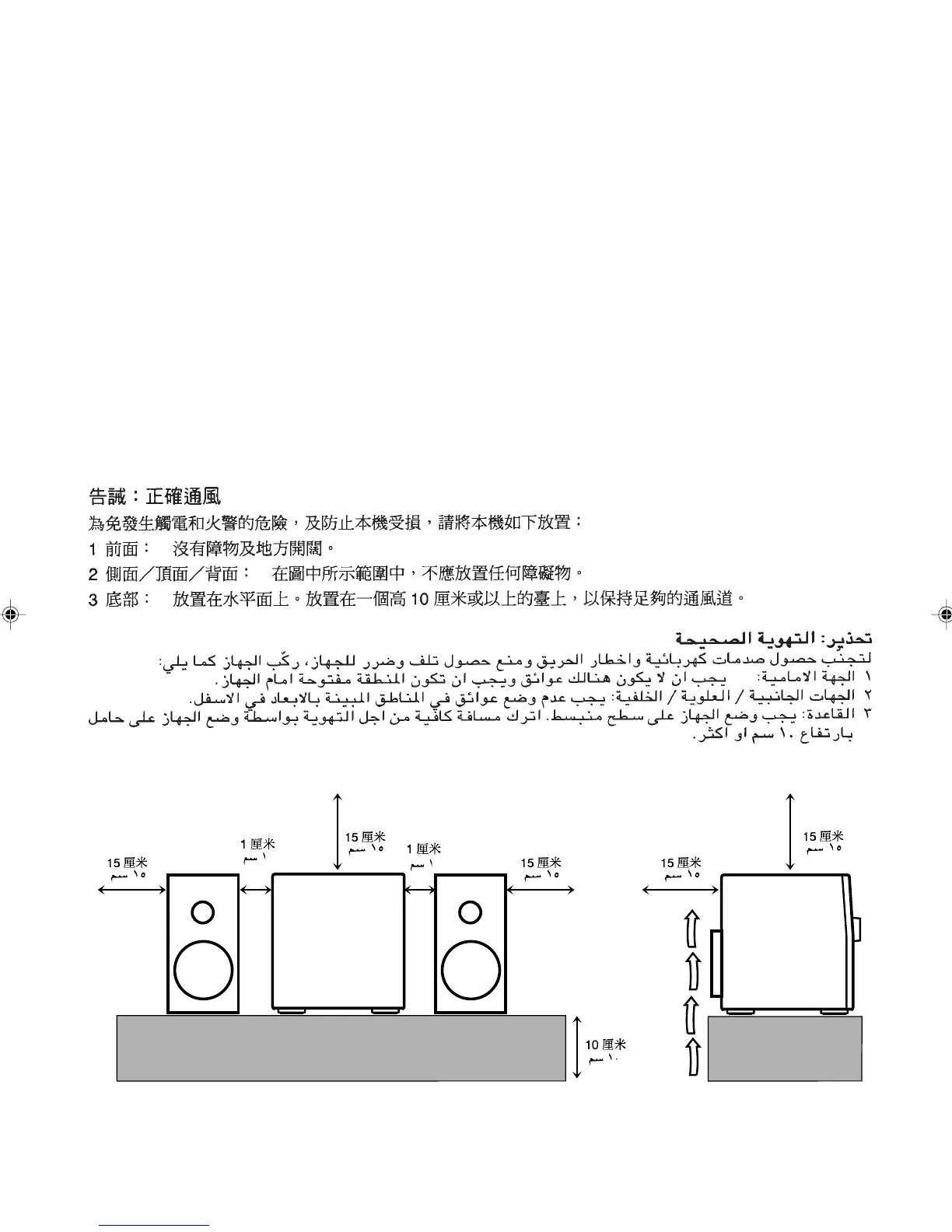 3 Bottom: Place on the level surface. Maintain an adequate air path for ventilation by placing on a stand