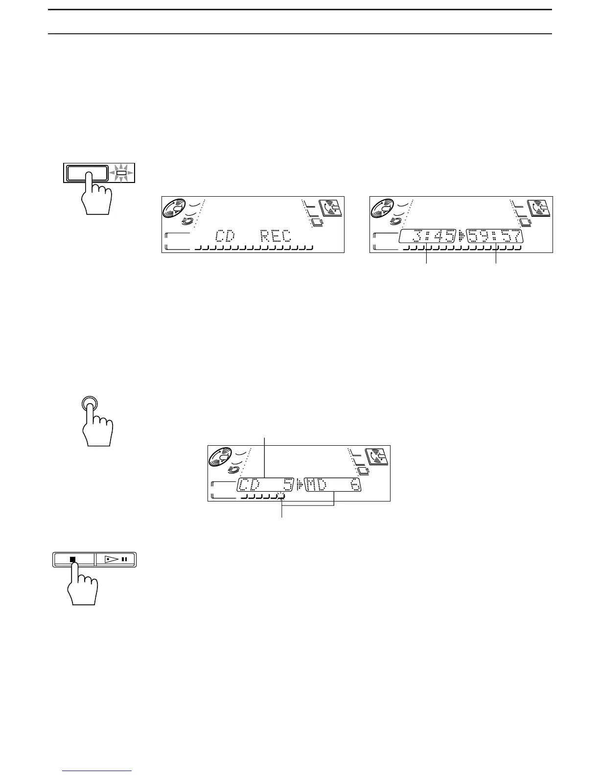 ❏ If you press the CD REC button while playing a CD, the recording starts from the beginning