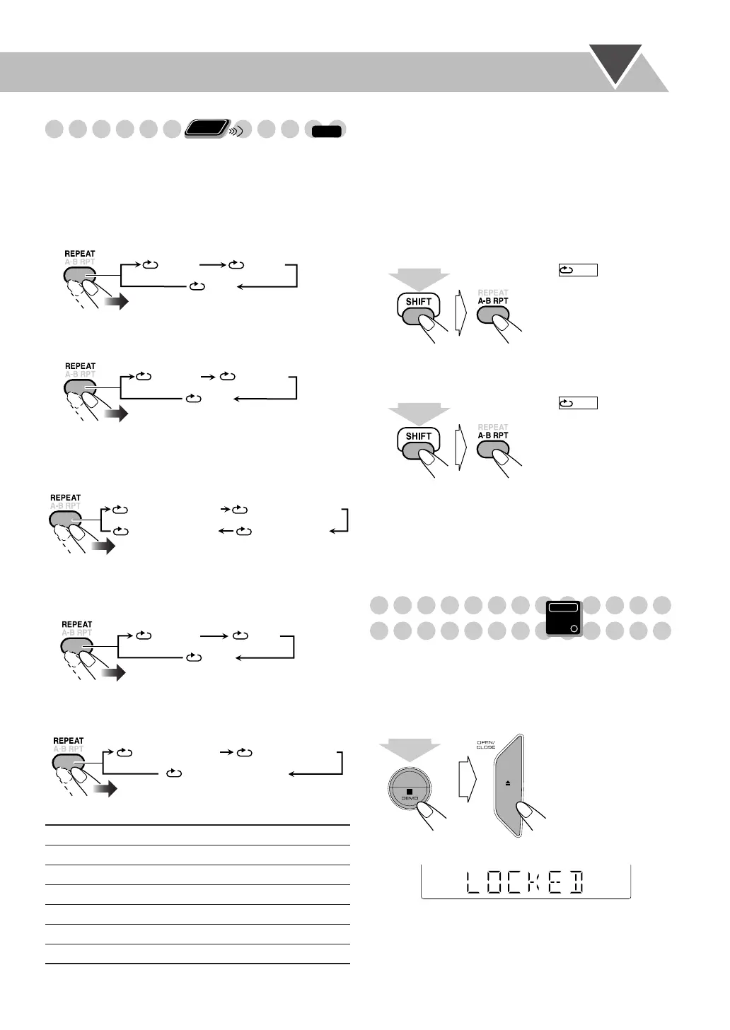 Repeats all tracks or all programmed tracks.