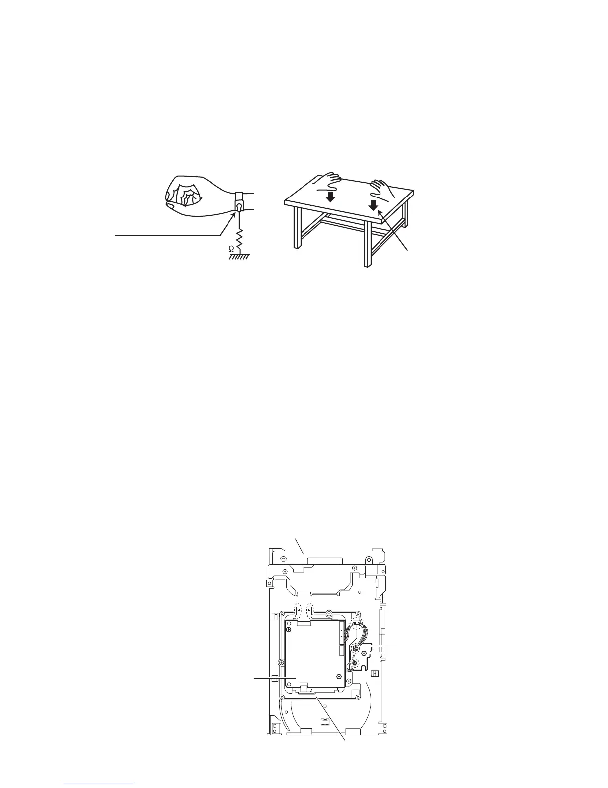 Static electricity in the work area can destroy the optical pickup (laser diode) in devices such as laser products.