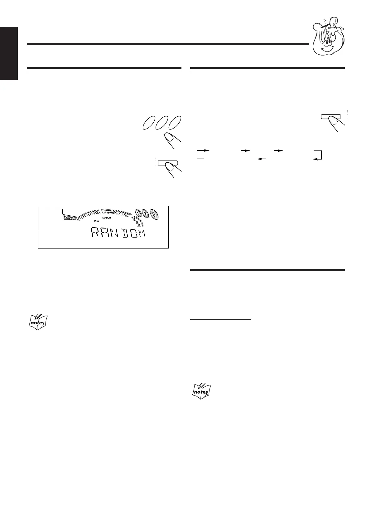 • Activating Random play cancels Repeat play or All Disc