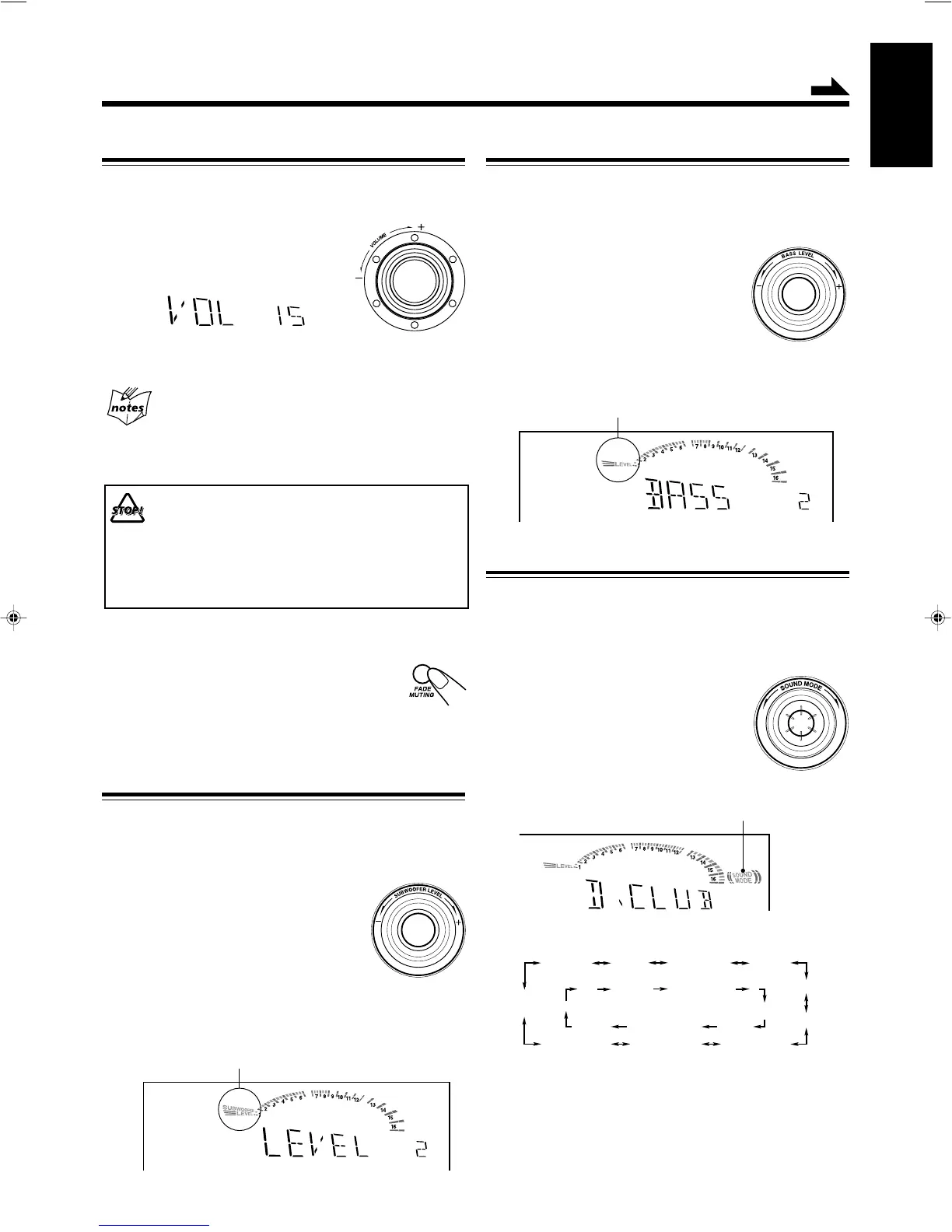 SUBWOOFER LEVEL + to increase the subwoofer volume