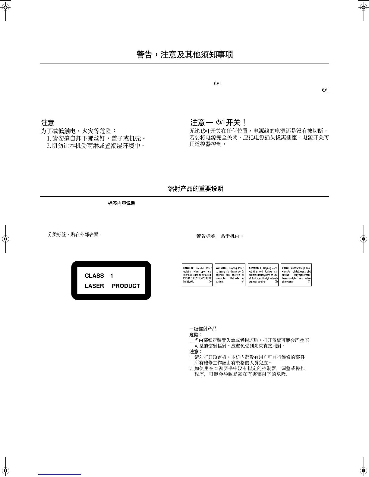 IMPORTANT FOR LASER PRODUCTS /
